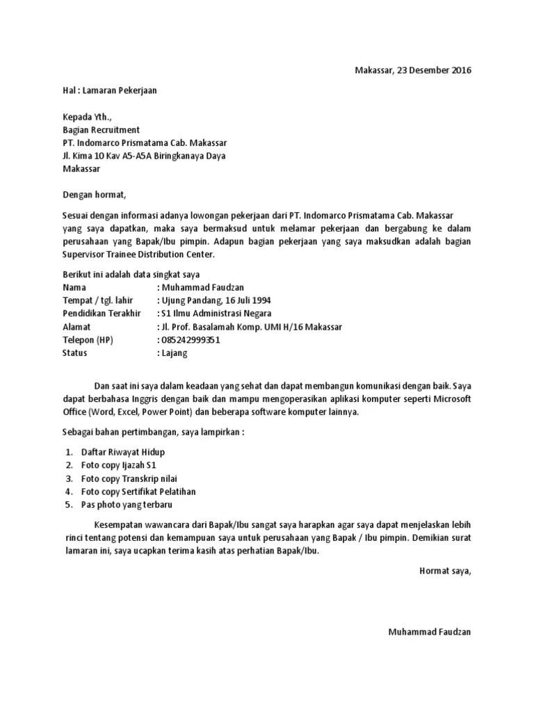 Contoh Lamaran Pekerjaan Pt Indomarco - Contoh Surat Lamaran Kerja Usaha Mikro Kecil Menengah - Lamaran pekerjaan kepada yth., pt.indomarco prismatama jl.industri dusun i no.60 tanjung morawa b .